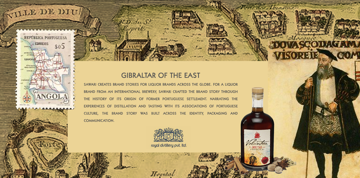For a liquor brand from a local brewery, Sawari rooted the brand story in the history of its origin of former Portuguese settlement. Narrating the experiences of distillation and tasting with its association of Portuguese culture, the brand story was told across the identity and packaging.